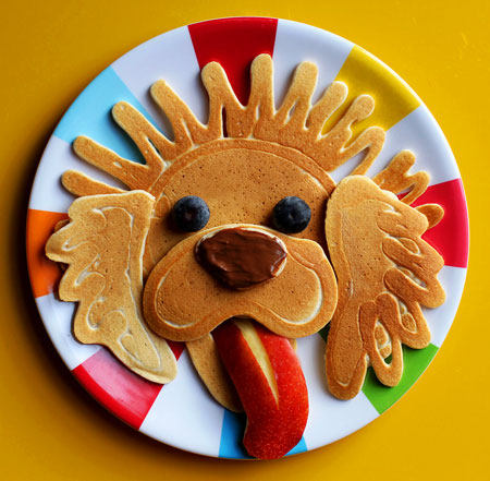商売熱心な団長は、子犬にもライオンの横で芸を仕込みました。