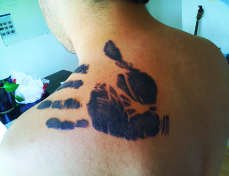 大小様々な何千人分もの手形によって