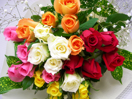 ドアノブに引っ掛けてあるビニール袋に入った花束を手に抱えて
