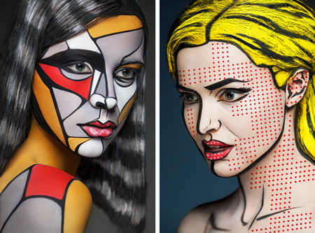 http://www.fastcodesign.com/3022046/exposure/insane-makeup-turns-models-into-2-d-paintings-of-famous-artists#12